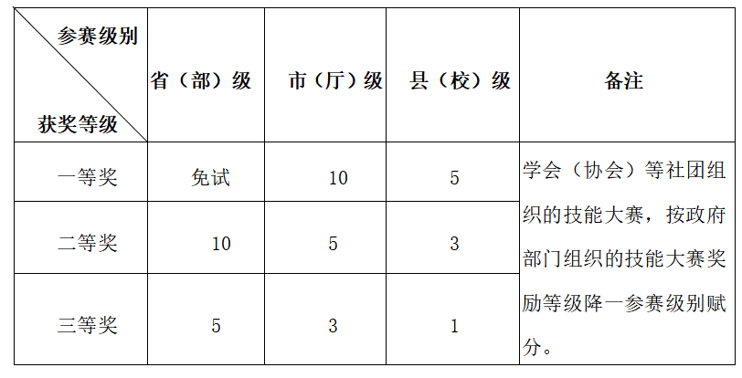2、技能竞赛成绩及赋分: