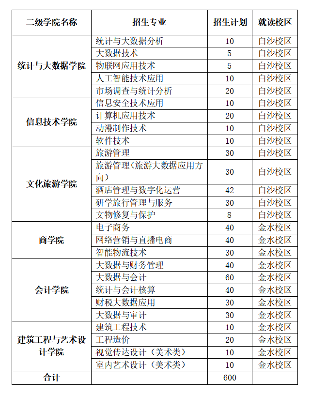 根据学校发展规划、办学条件、生源状况、毕业生就业状况等因素,会同相关职能部门制定2024年单招计划及分专业招生计划,经学校单独招生委员会审定后,报省教育厅备案。我校高职单独招生26个专业(含方向)共600人。具体专业招生计划分配详见《2024年河南信息统计职业学校单独招生计划》,学校根据省教育厅单招章程审定结果,将单招的分专业计划通过相关渠道向社会公布。