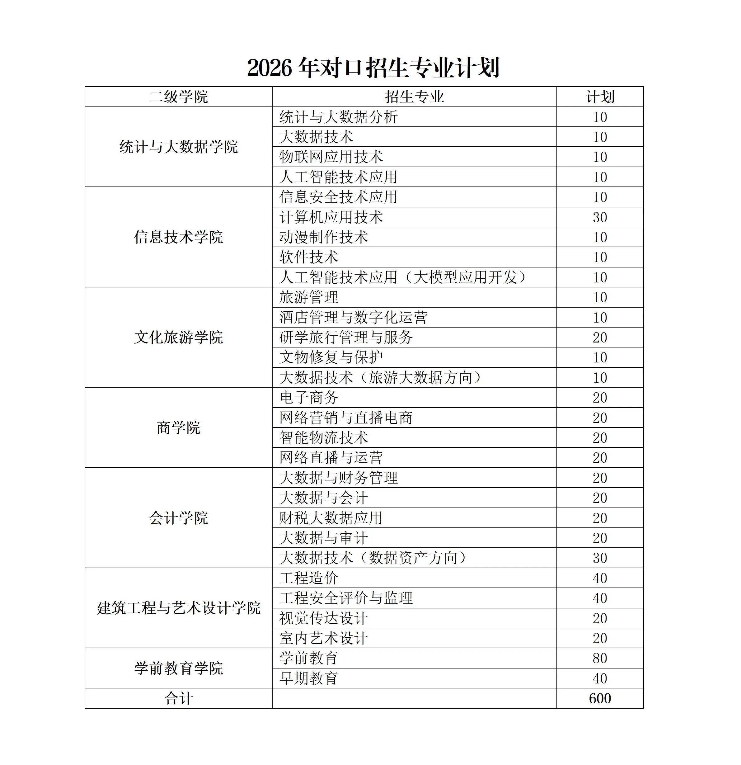 第八条 招生计划按照河南省教育厅审核批准的计划数执行。学校对口招生专业29个,详见学校对口招生简章。